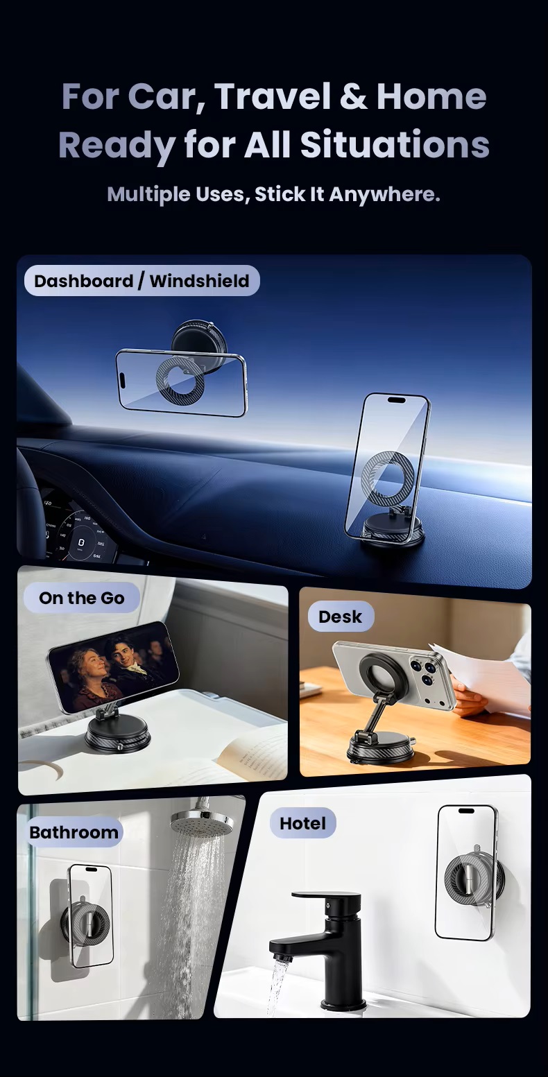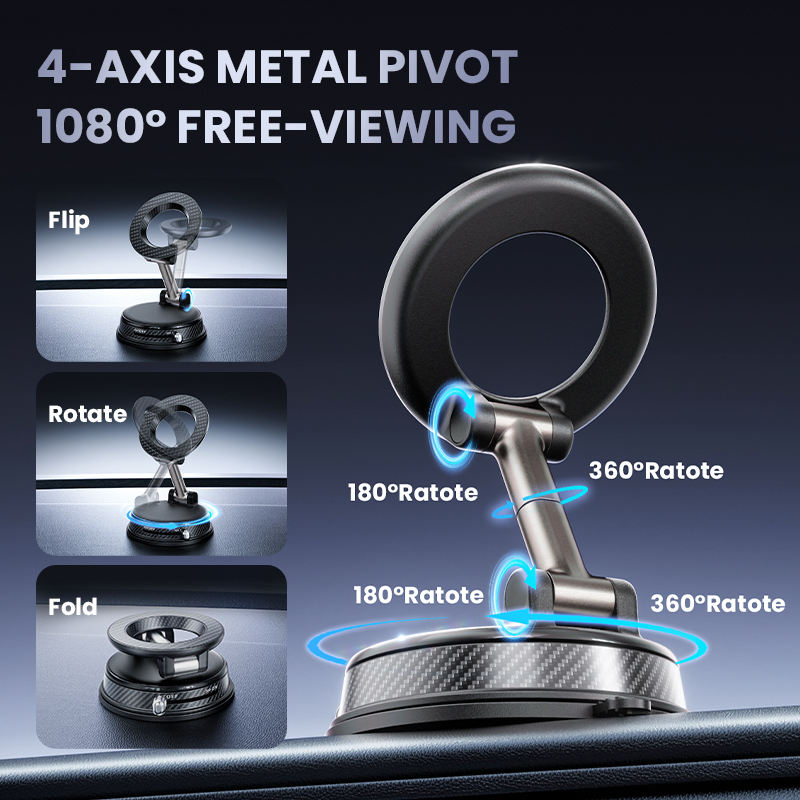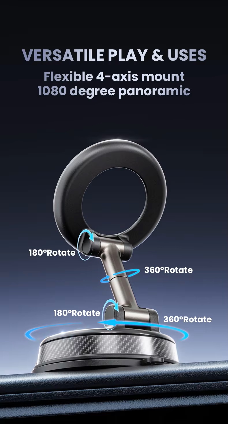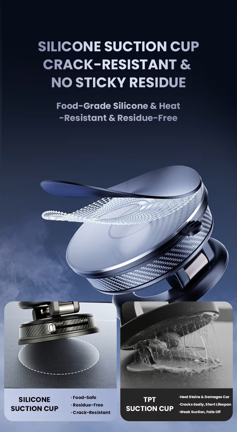 Vacuum magnetic phone mount portable folding 360 degrees rotation car phone stand silicone suction cup with magnetic sheet