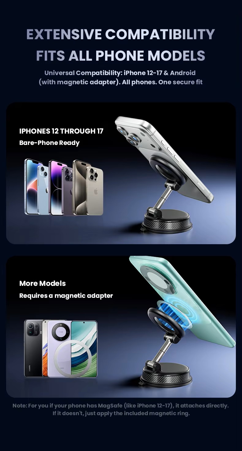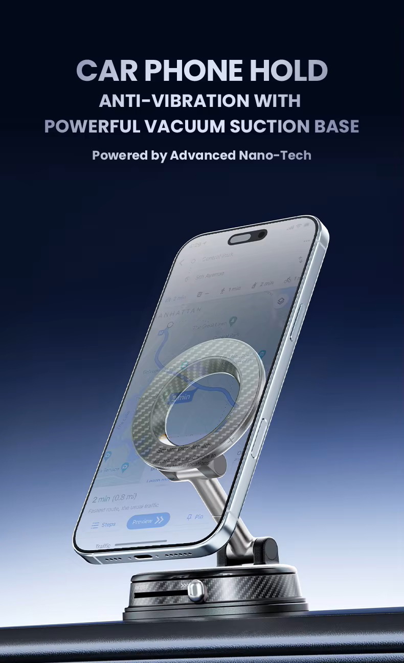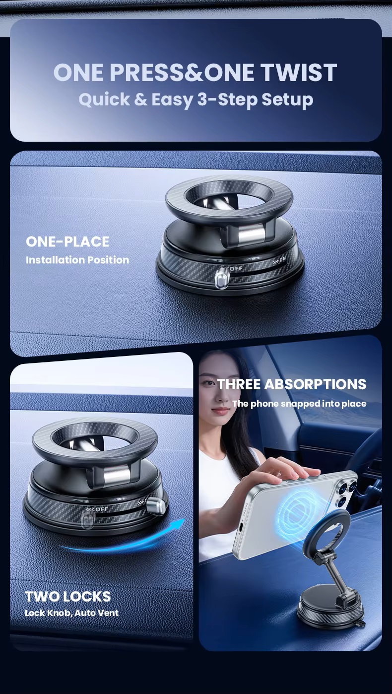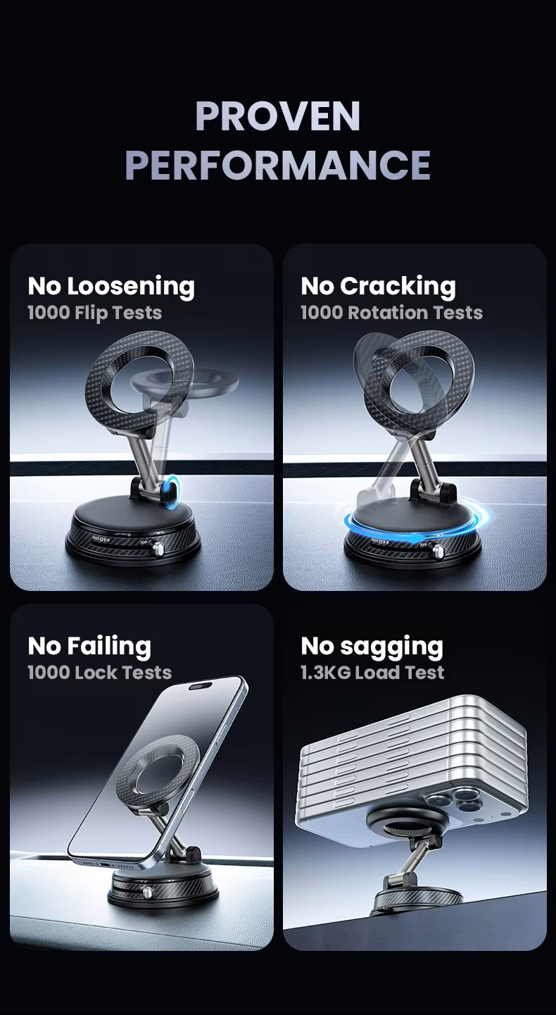 Vacuum magnetic phone mount portable folding 360 degrees rotation car phone stand silicone suction cup with magnetic sheet