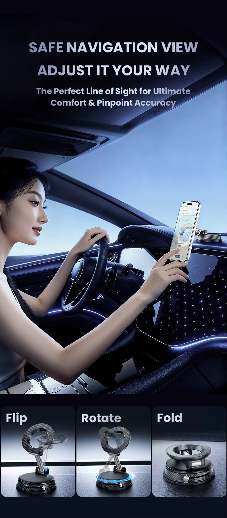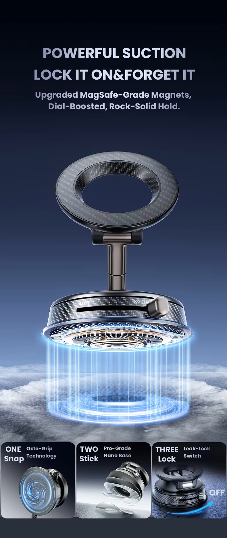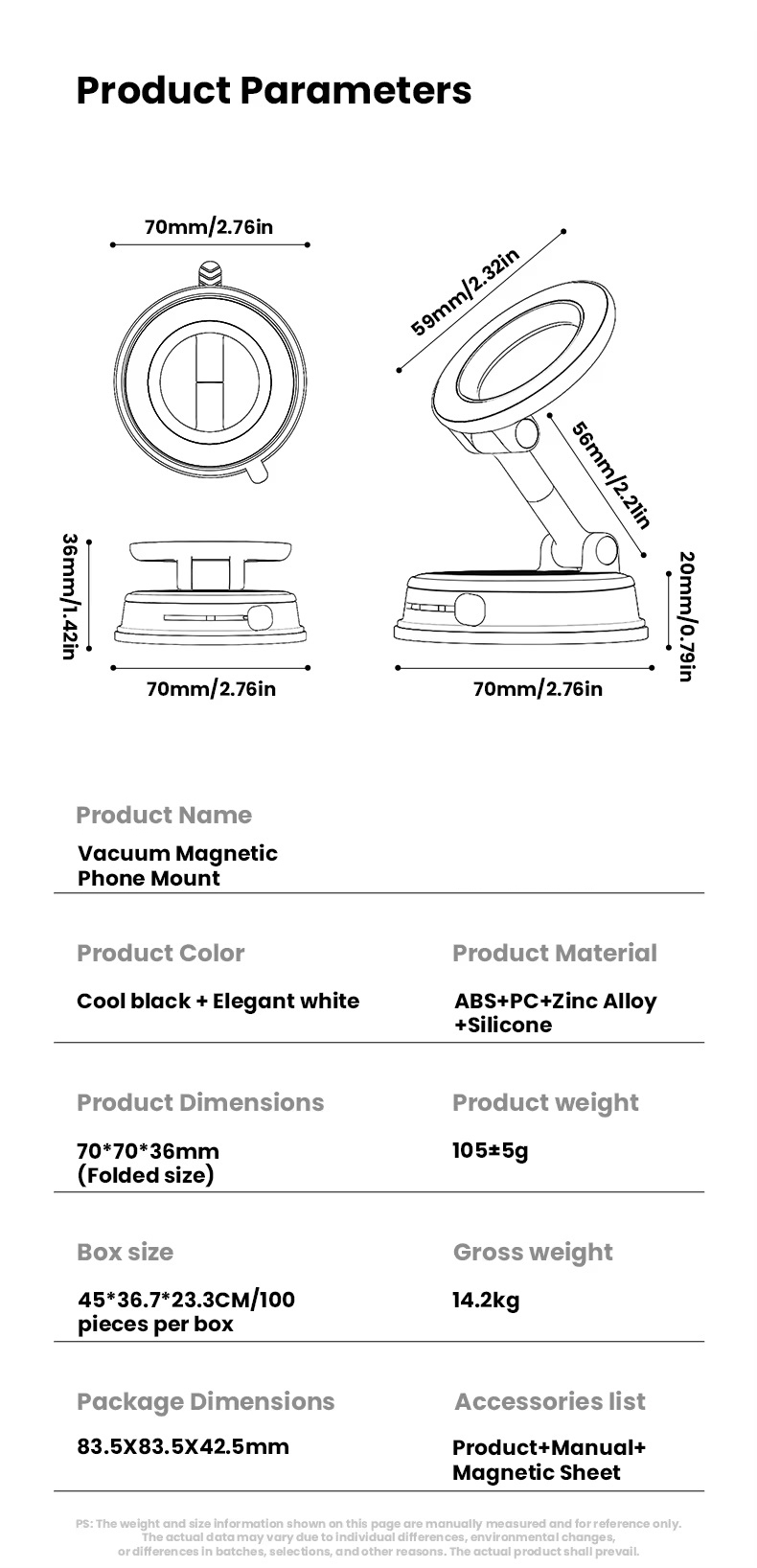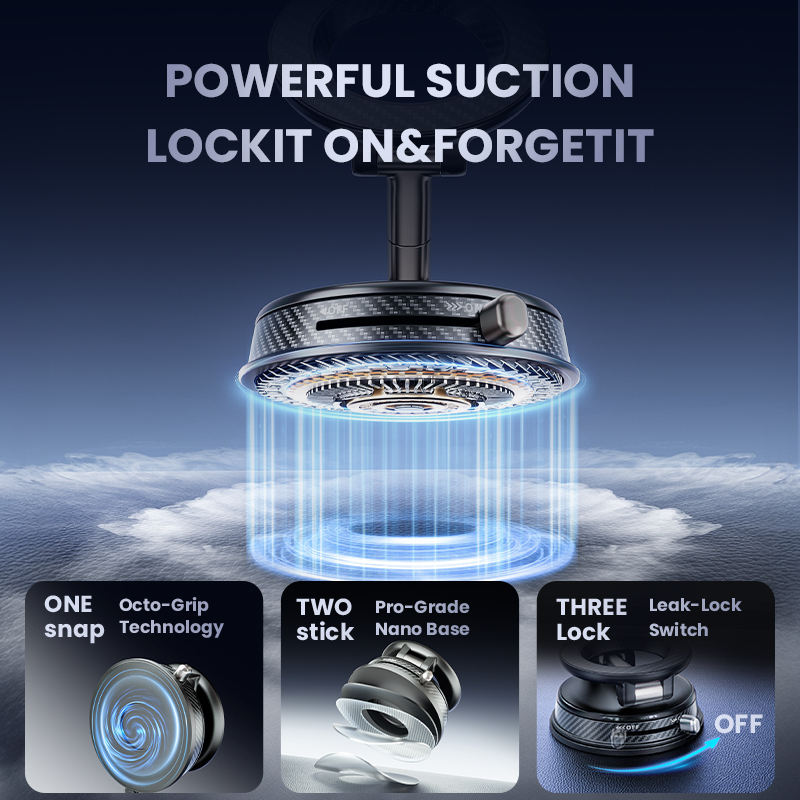 Vacuum magnetic phone mount portable folding 360 degrees rotation car phone stand silicone suction cup with magnetic sheet